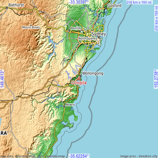 This Cringila Elevation Map is licensed under CC BY-SA. You may reuse any part from this page, if you give a proper credit by linking to this URL: