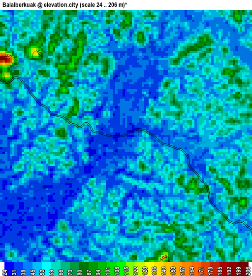 Below is the Elevation map of Balaiberkuak, which displays elevation range with different colors. Scale of the first map is from 24 to 206 m (79 to 676 ft) with average elevation of 52.2 meters (=171 ft) [note 1]