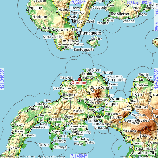 This Olingan Elevation Map is licensed under CC BY-SA. You may reuse any part from this page, if you give a proper credit by linking to this URL:
